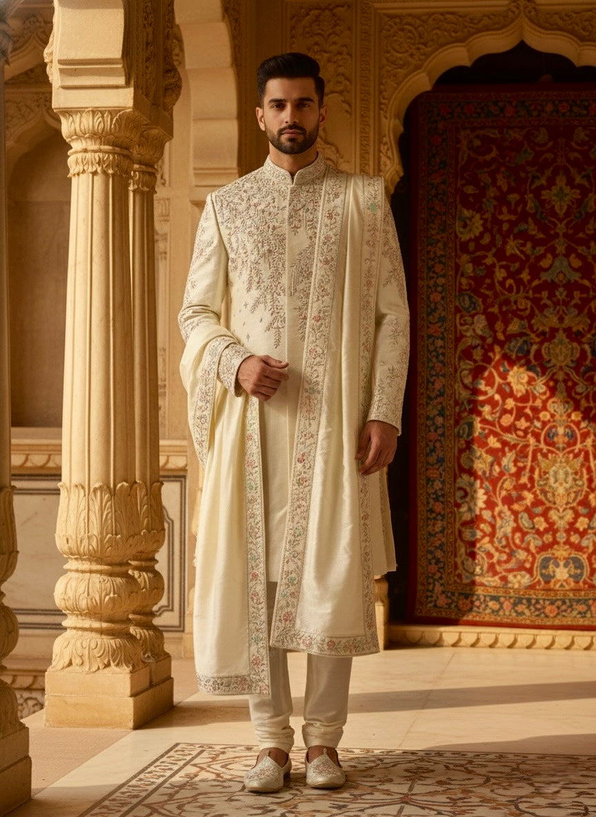 Ivory Hand Embroidered Sherwani