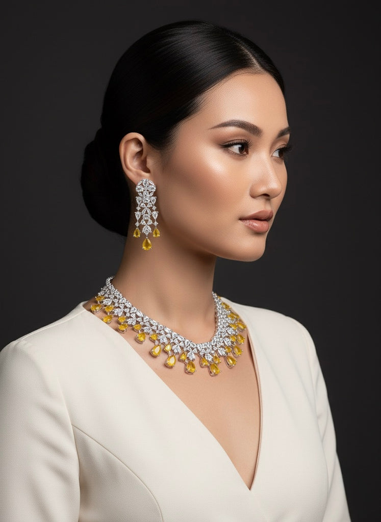Victorian Zirconia Yellow Necklace Set with Earrings