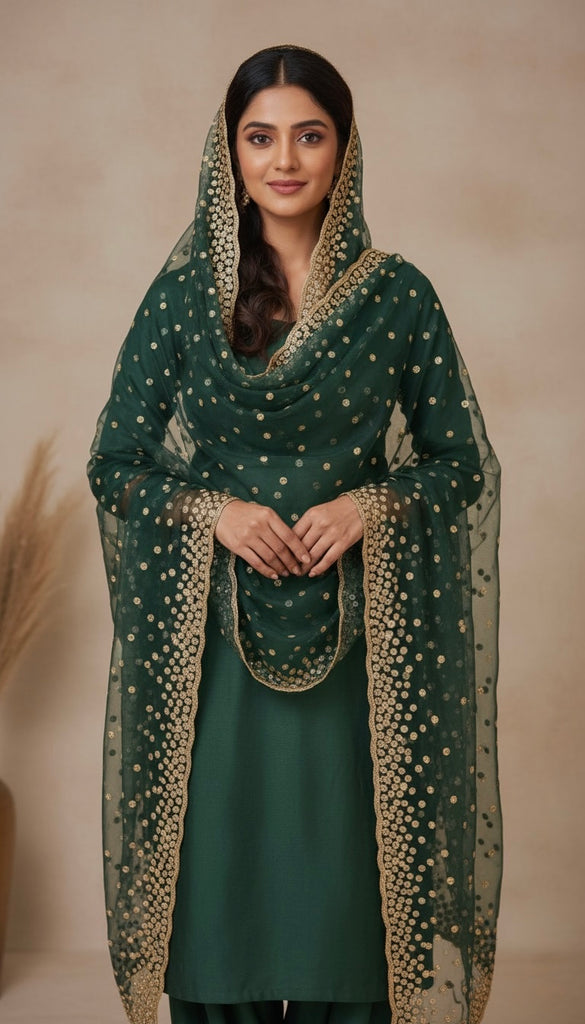 Emerald Green embellished Dupatta
