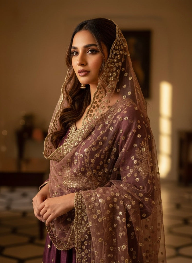 Dusty Mauve Embellished Dupatta
